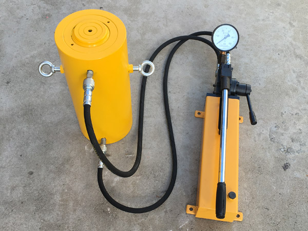 5、使用時先將手動泵的快速接頭與頂對接,然后選好位置,將油泵上的放油螺釘旋緊,即可工作。將放油螺釘旋松,油缸卸荷。